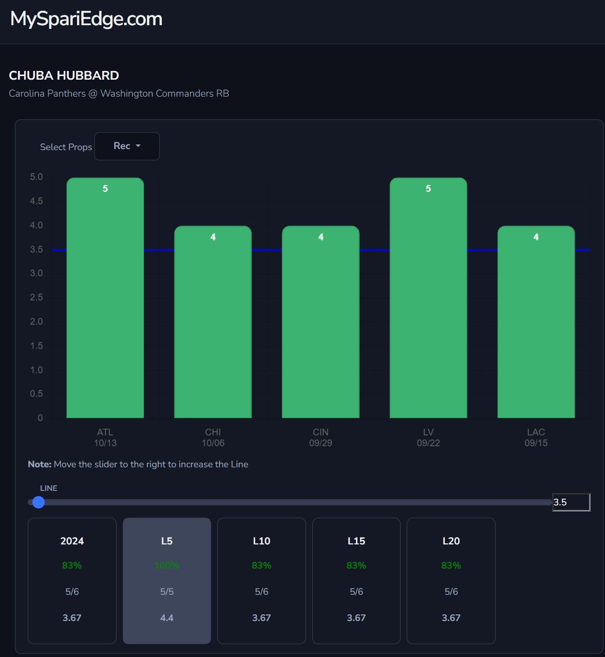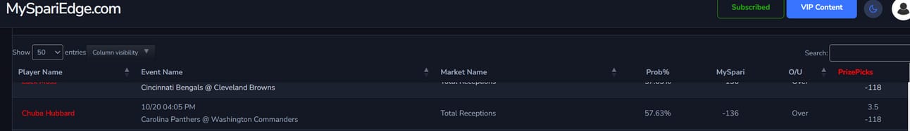 Chuba Hubbard (CAR) o3.5 Receptions was the BEST VALUE on the PrizePicks board.
