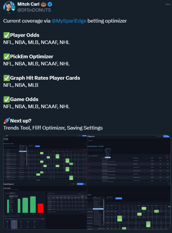 Substantial updates were rolled out for the $9.99 Betting Optimizer. DFSnDonuts highlighted them on Twitter this week.