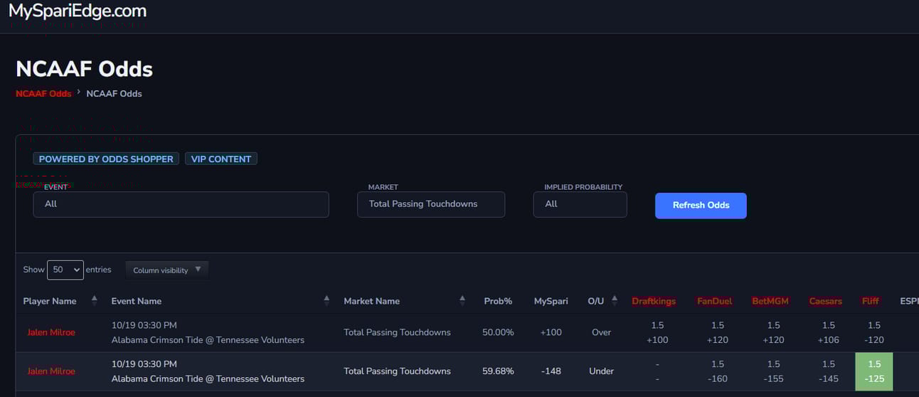 College Football Game Odds Added