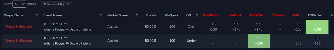 Example: NBA > Select 3-pointers made > Last 15 Games > display will show all the top hit rates for that market based on their live odds (Steph Curry over 4.5 3’s in 13/15 games at the top, Damian Lillard o2.3 3’s in 12/15 games next, etc…)