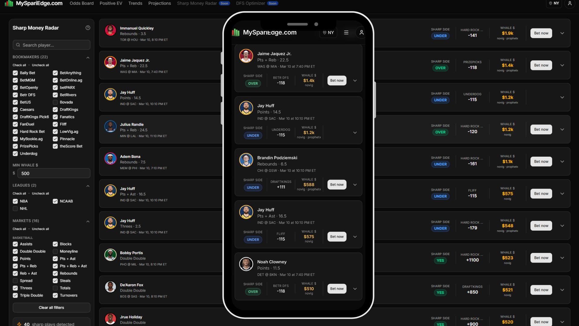 We have used our 80+ apps access, taken the sharpest books in the world, weighted them in calculations, and created “Sharp Odds” to use while we scan the pickem apps, finding you the best plays.