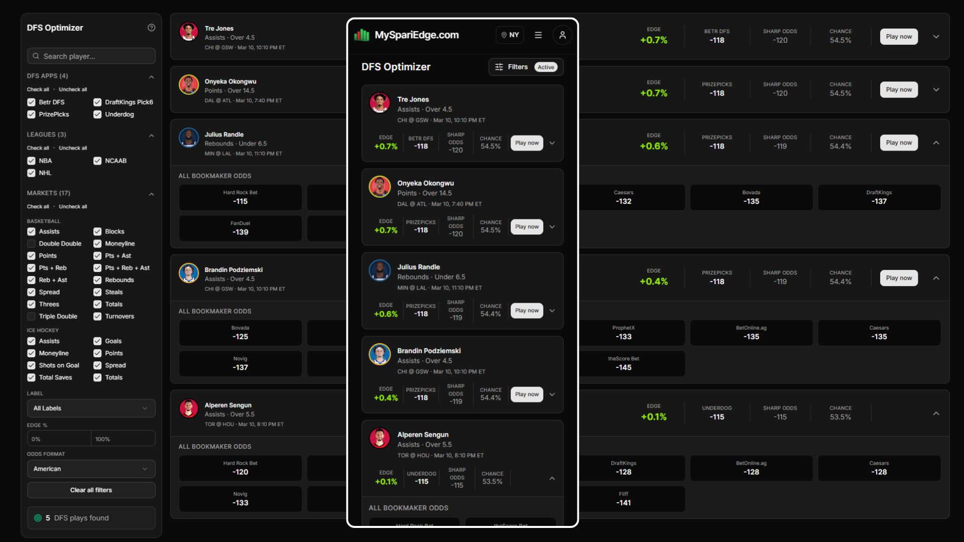 The DFS Optimizer is brand new and perfect for you pickem app users.