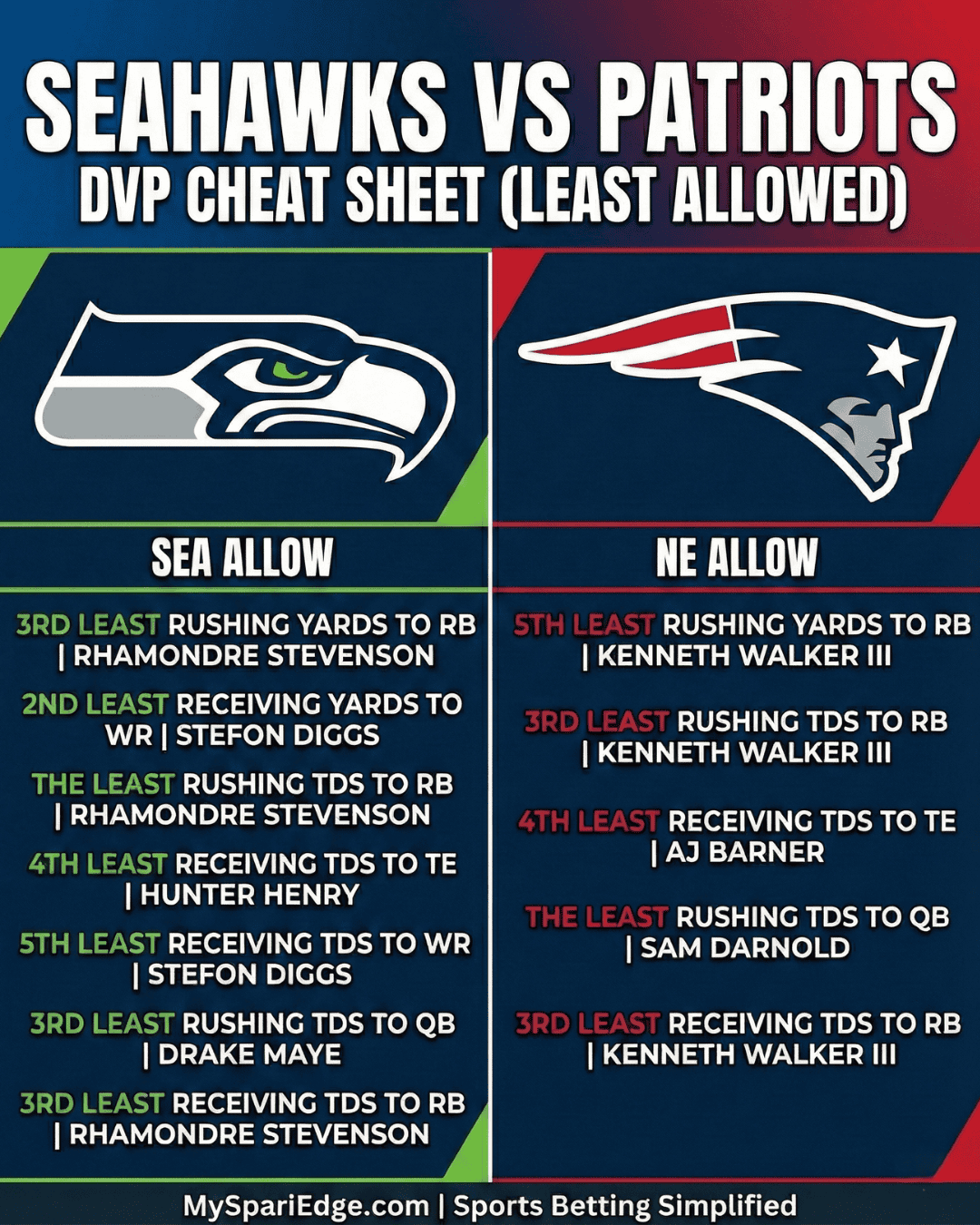 One concern: George Holani is a much better pass-blocker than Kenneth Walker. If Seattle is losing later in the game, Holani could threaten critical opportunities