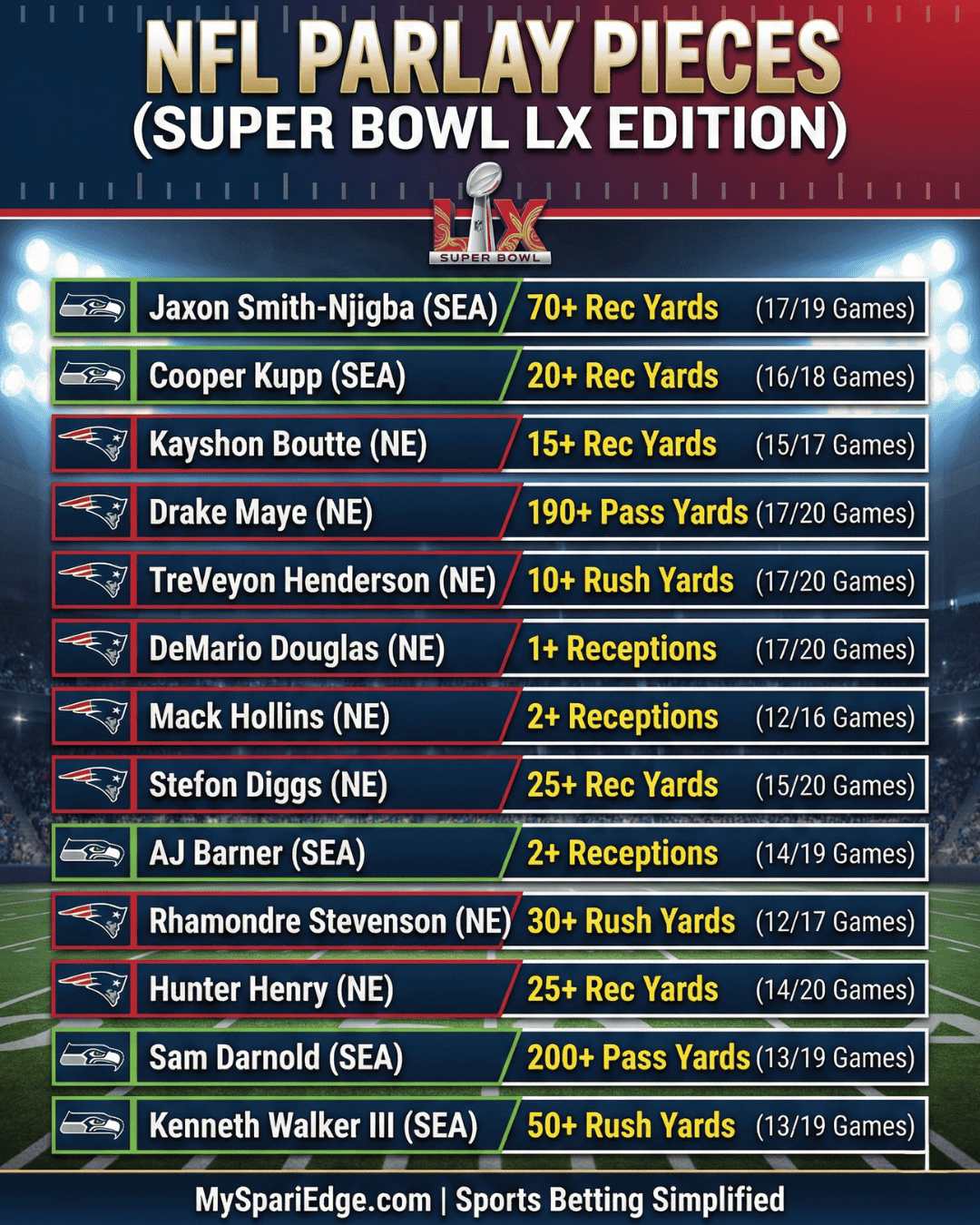 As Super Bowl weekend approaches, betting lines and matchup data are already revealing several important trends. Here’s a first-look breakdown of the game, player prop angles, and broader NFL storylines worth watching.